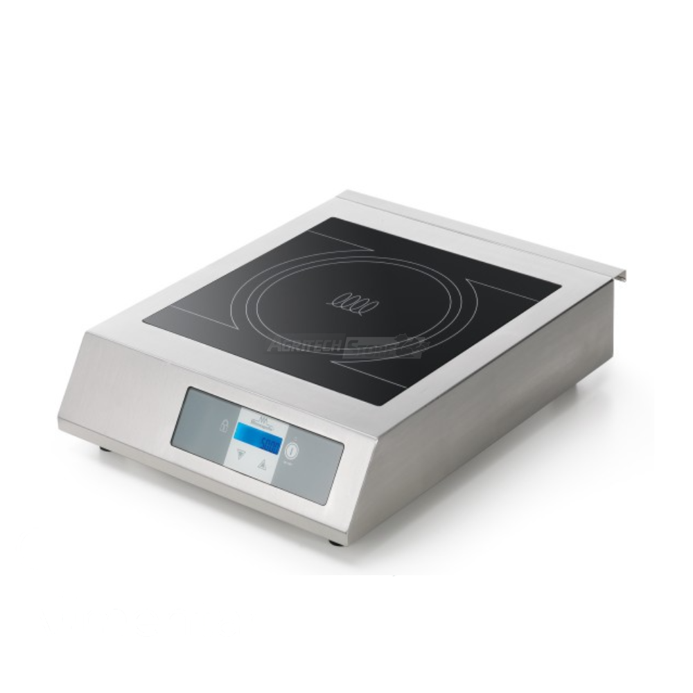 The Sirman IH 50 XL induction hob The 5 kW hob is designed for professional kitchens, restaurants , and catering. Thanks to its 410 x 410 mm tempered glass ceramic top , it guarantees uniform heat distribution and quick cleaning . The IP67 touch control with LED display allows you to precisely adjust power and temperature , offering fast , safe and highly efficient cooking .