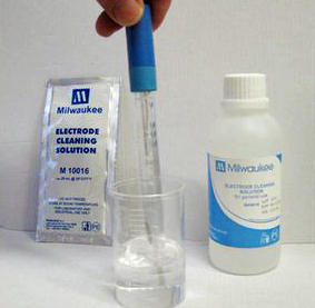 - Immerse only the glass membrane of the electrode in the cleaning solution M10016B general for about 5-10 minutes.
