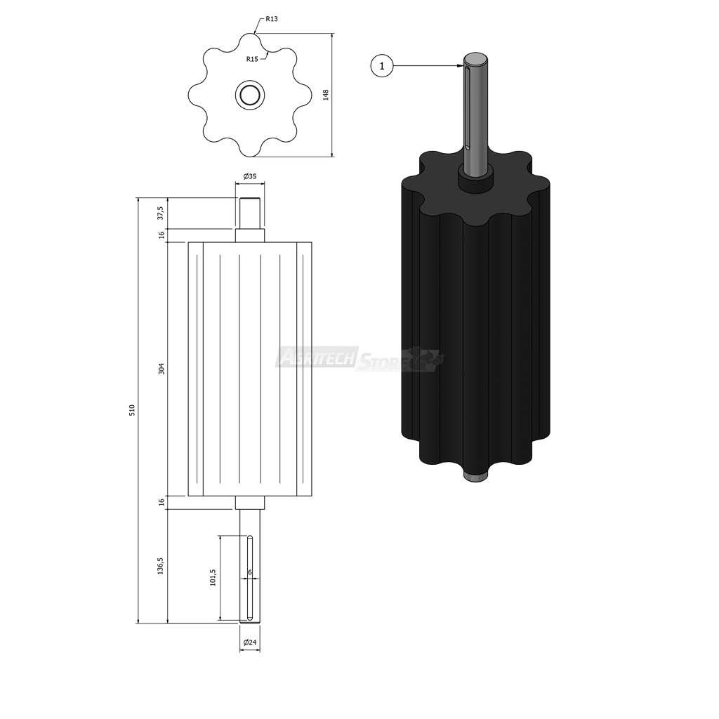 Replacement rubber roller for Corvina destemmers, available in both right and left versions.