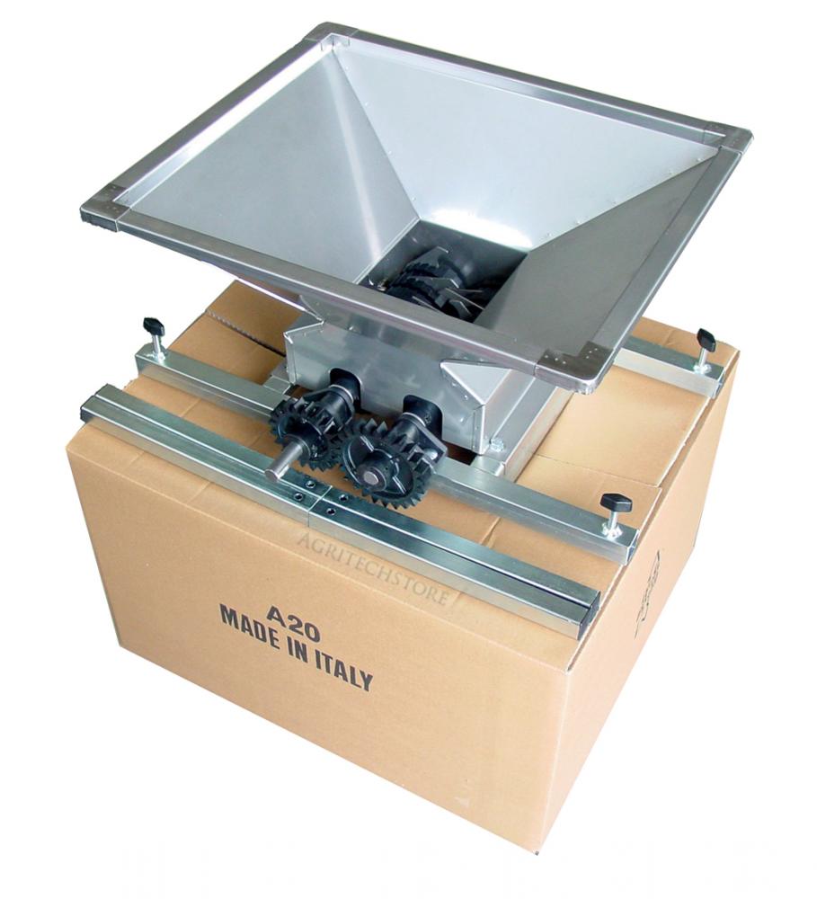 Crusher MINI FRUTTA made in stainless steel AISI 304 with nylon rollers with stainless steel knives. Removable with box