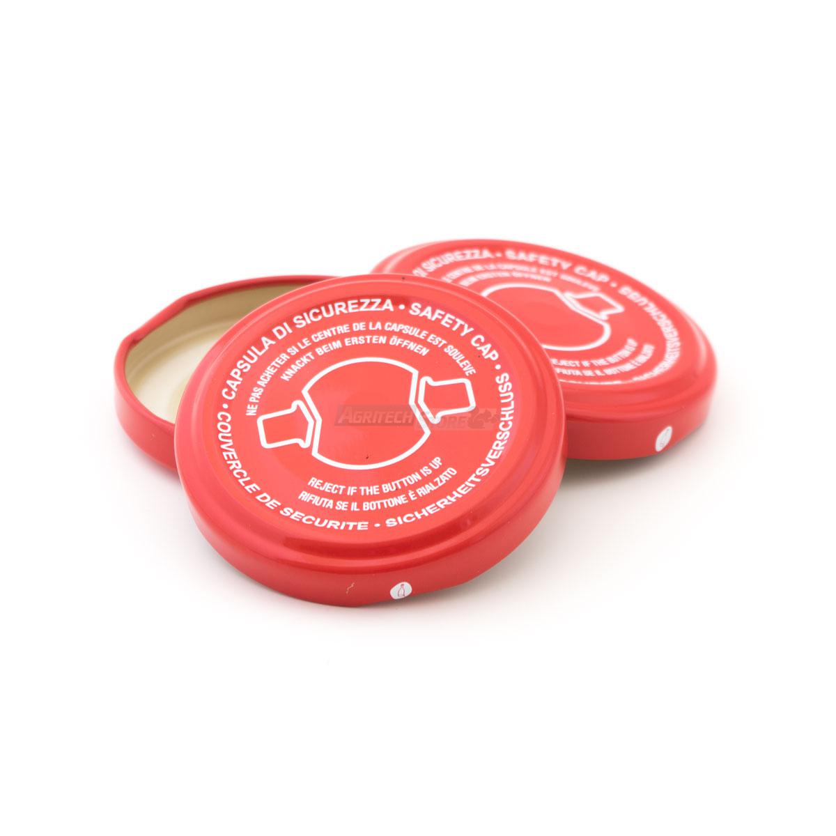 Ausgestattet mit Sicherheits-Flip (click / clac) - geeignet zum Verschließen von Produkten in Öl; Sobald das Produkt pasteurisiert und in die Mitte der Kapsel gepresst wurde, bestätigt das Fehlen von "click / clac" das korrekte Schließen.