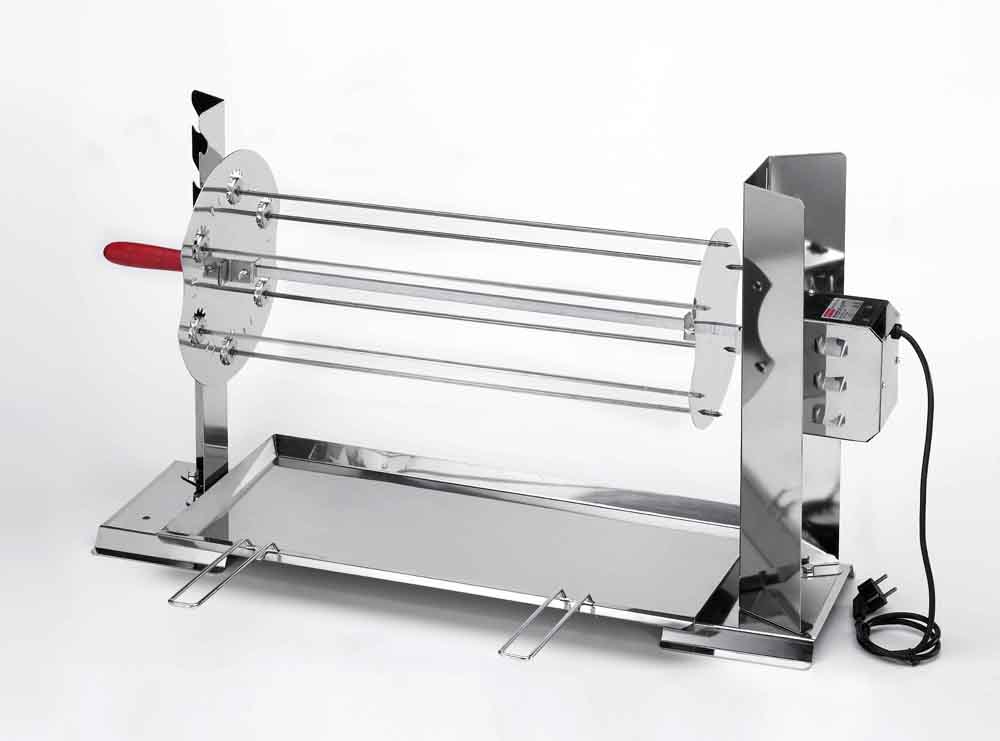 Der Spieß kann auf Wagen oder Beine sein. Er hat Feder, Schaufel, Konsole und Schaleträger. Er kann auch Optionals haben, wie z.B. doppelte Grill, Kit  für Hachse, u.s.w.