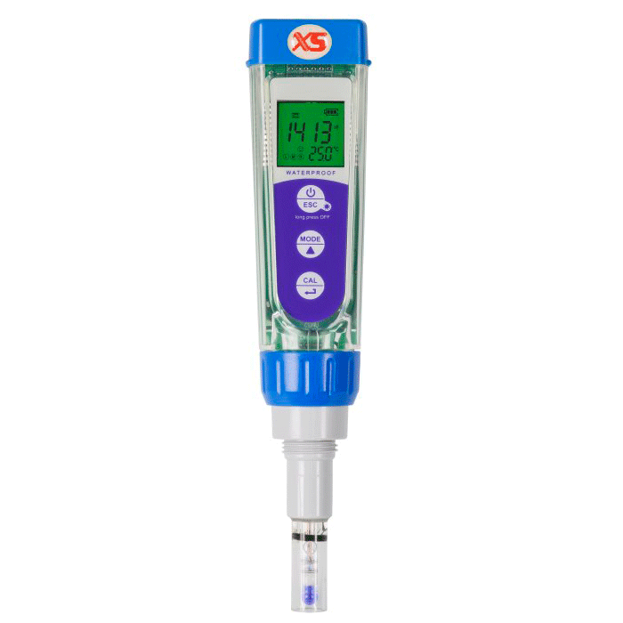Thermometer tragbares Leitfähigkeitsmessgerät und wasserdicht IP67. Mit Mikroprozessor und Elektrode kombiniert austauschbar hohe Lebensdauer. Großes LCD-Display mit 3 Farben-Pads für Kalibrier- und Messstabilität verwendet.