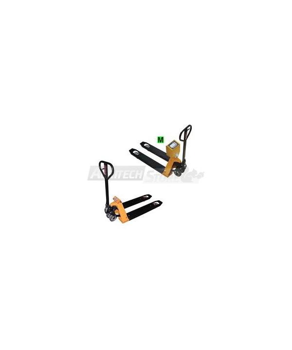 Wunder Hubwagenwaage mit Stahlkonstruktion von starker Konsistenz und Dicke, Ofenlackierung mit doppelten Gummiführungsrädern und doppelten Polyurethan-Laderädern. Wiegesystem mit 4 Wägezellen aus Aluminium. Mechanische Folientastatur mit 7 Tasten im Relief