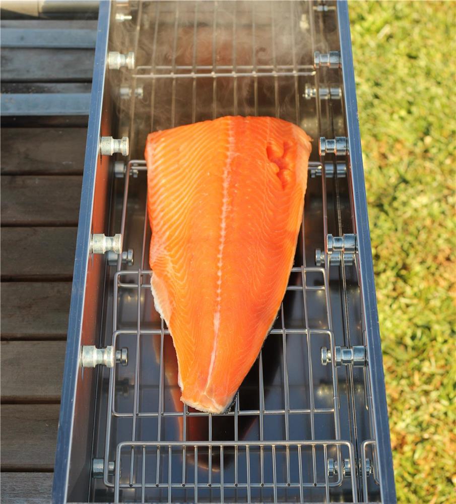 Incluye 5 ganchos INOX con punta para colgar los productos listos para ahumar.