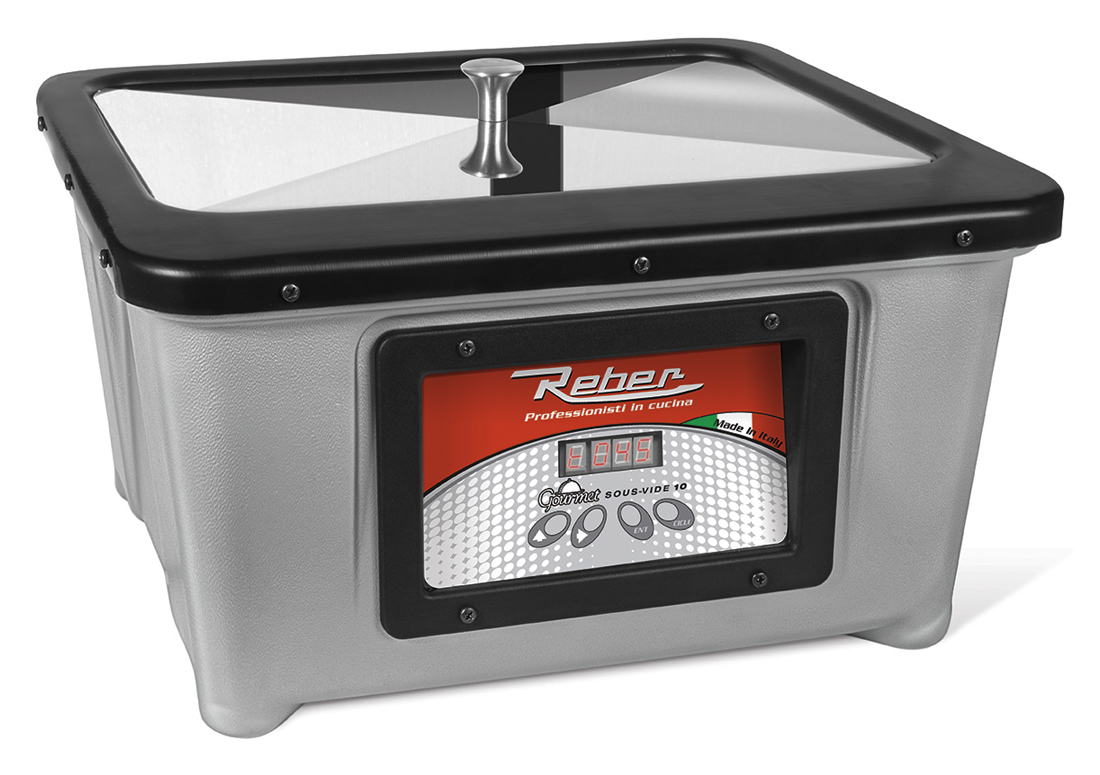 El Gourmet Sous-Vide es un dispositivo para cocinar a baño Maria con temperatura y tiempo de cocción controlados, diseñado y construido íntegramente en Italia y específicamente diseñado para la cocción de alimentos al vacío envasados con antelación en una bolsa o recipiente.