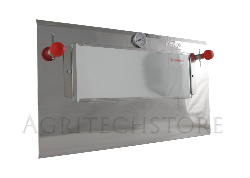 Se puede aplicar exclusivamente a la parte delantera del asador, con vidrio templado 2 cm. 47x17,50, tiene un termómetro analógico 0-350 ° C