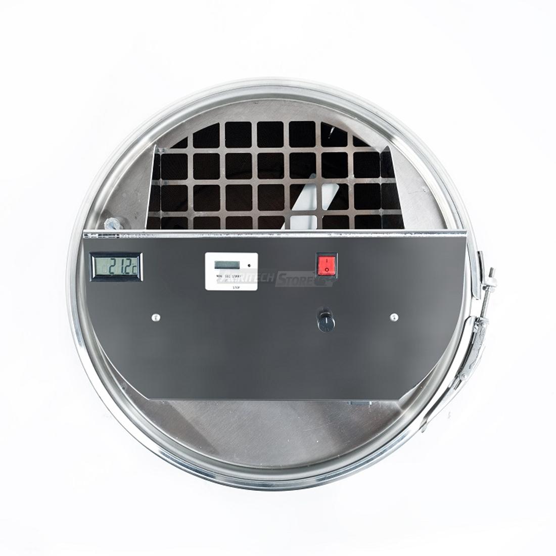 En la tapa se halla el termómetro digital conectado a la sonda de temperatura y un temporizador digital.