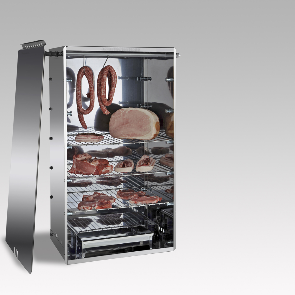 Includes 3 grids in stainless steel AISI 304 stainless steel hooks at 1 and 5 points for hanging the products to be smoked