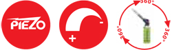 The burner is equipped with the practical piezo ignition and the flame adjustment button.