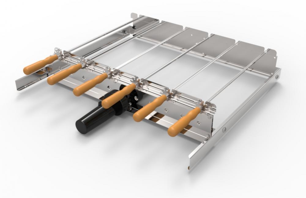 Operating the engine battery 6 skewers rotate simultaneously allowing the food to roast evenly.