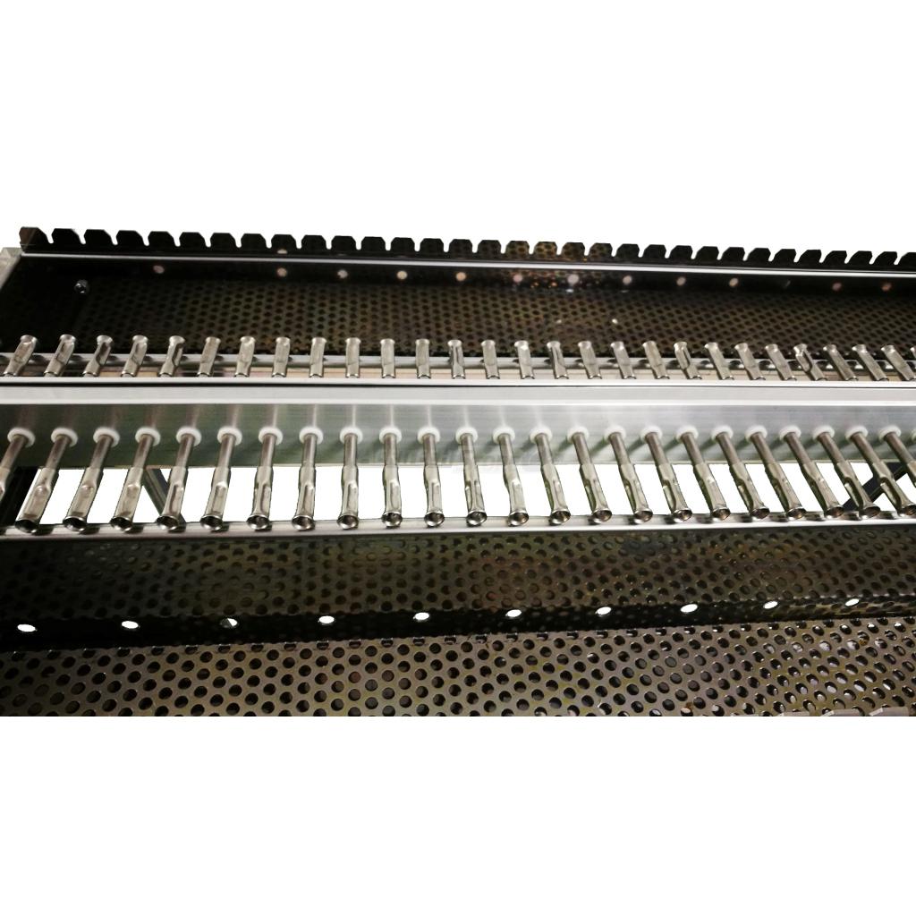 Classic Extra charcoal grill with a mechanism of 80 pieces on a double line, this reduces the overall dimensions and maximizes cooking, equipped with automatic rotation of the roasts and skewers, it produces homogeneous cooking, without effort and in complete safety, optimal cookingis guaranteed by a slow rotation movement (2 revolutions/minute) of each individual roast. The product is entirely made of stainless steel, which indicates great reliability and durability over time, ideal for use both professionally and at home.