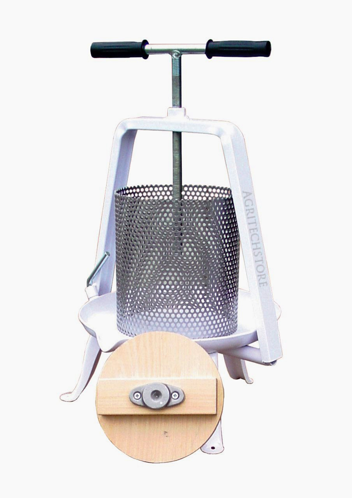 Multi-functional small press with stainless steel cage; it is used for grapes, eggplants, herbs, beeswax and tomatoes...