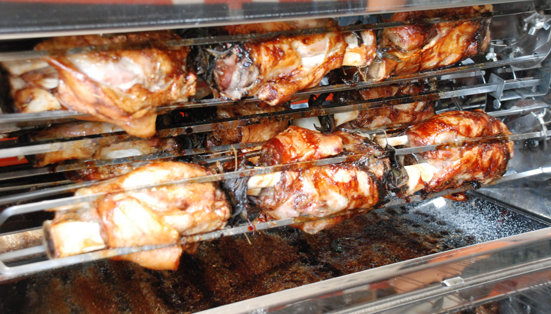 KIT PORTASTINCHI PORTAGALLETTI and roasters for Brescia 50 cm. 4 spears: The cages are made of stainless steel and contain the shin or the cockerel, whole. The rotation system produces a single perfect cooking.