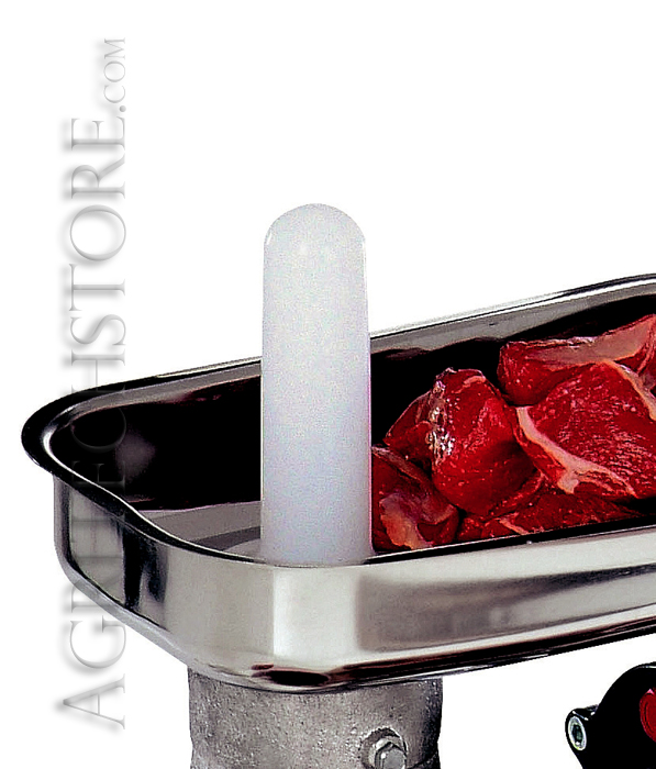 The meat grinder Reber a plate fitted as standard (with 6 mm holes for art. 9502 N and 9501 N, mm.8 other models) are available on request from mm plates with holes. 4.5 to 6 - 8 - 10 - 12 - 14 - 16 - 18 - 20 (only up to mm.16 for mincers N.5). Ranked # 22 and 32 for the meat grinder plates and knives are available in stainless steel. Funnels are also available for sausages and filling (to keep the propeller in place of the meat grinder while doing the sausages).