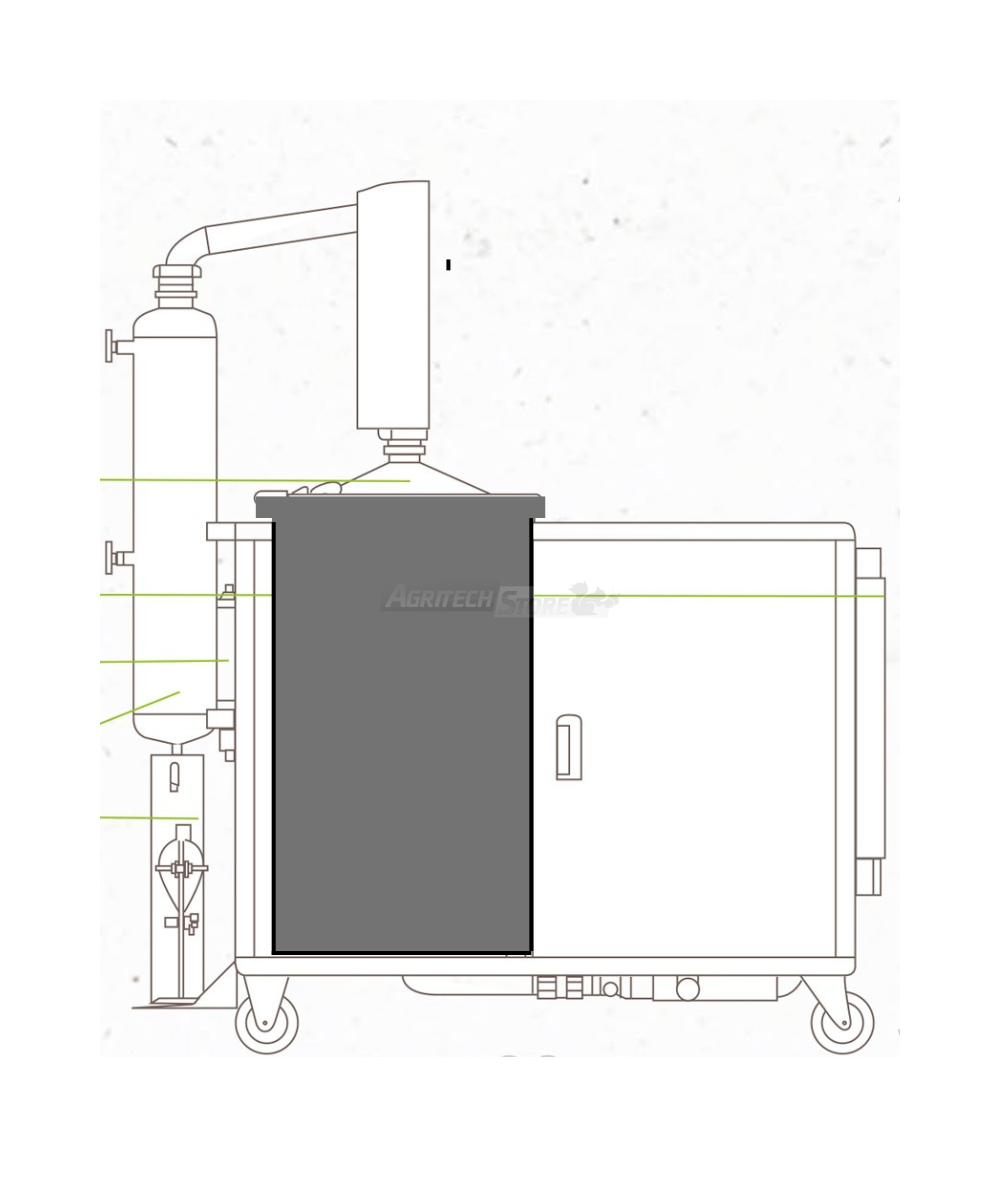 The spare basket is a useful tool to speed up the distillation processes. While in one the extraction process is in progress, in the other basket you can load other material to be distilled.