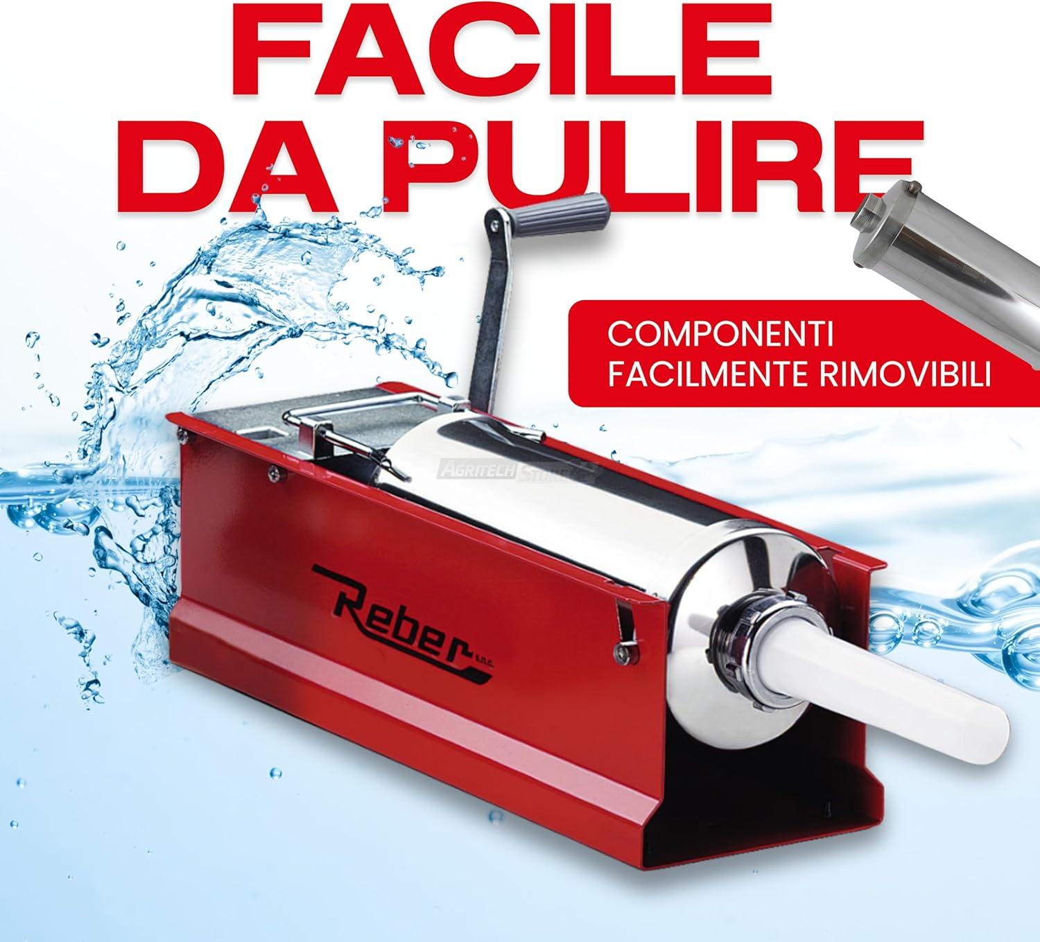 REBER, CALITATE ȘI TRADIȚIE FABRICATĂ ÎN ITALIA: Un brand italian istoric din 1964, Reber combină măiestria, tradiția și standardele profesionale. Fiecare aparat de umplut cârnați este fabricat în Italia din materiale selectate și testat riguros pentru a asigura igiena, fiabilitatea și performanța ridicată.