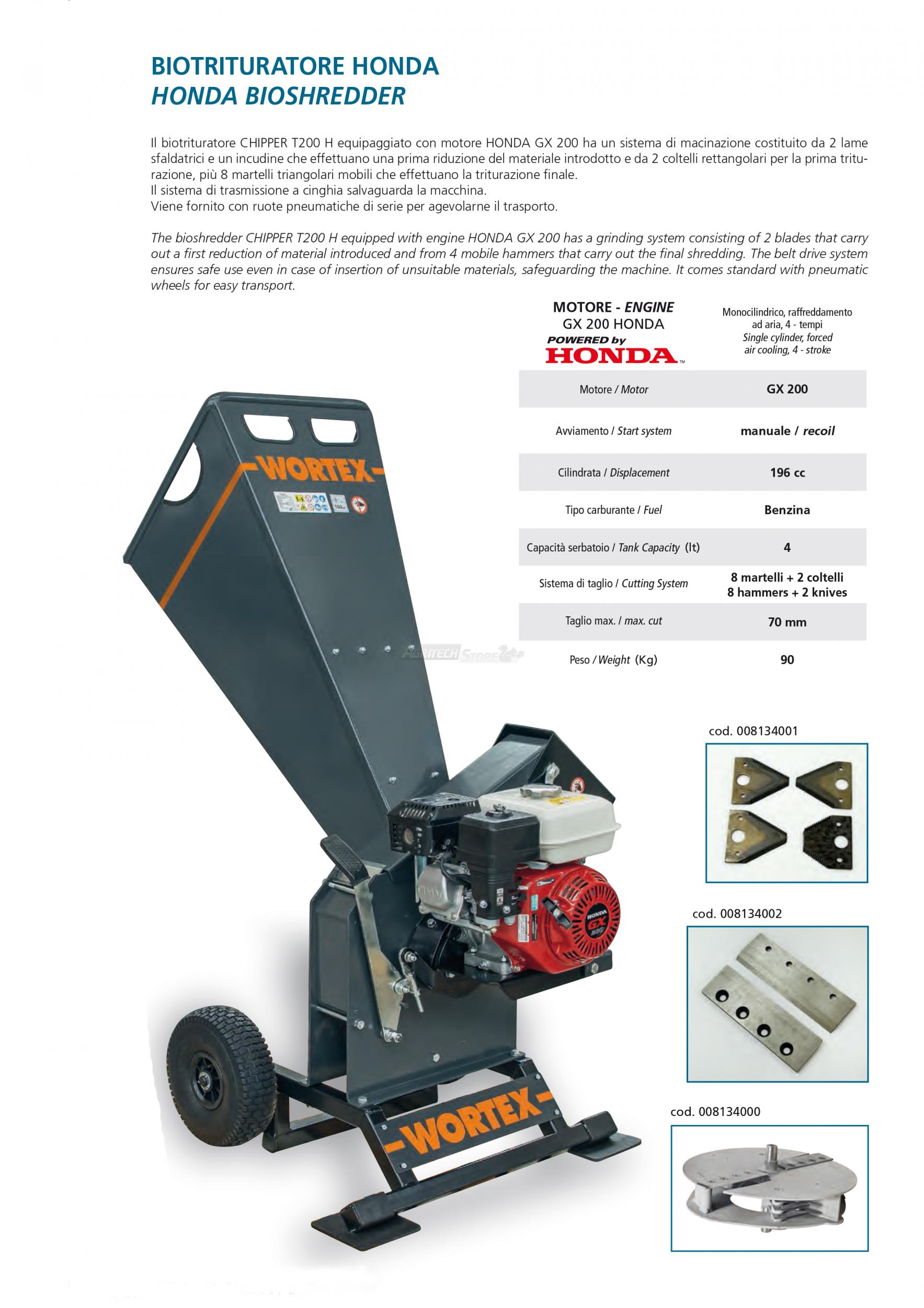 The bioshredder CHIPPER T200 H equipped with engine HONDA GX 200 has a grinding system consisting of 2 blades that carry