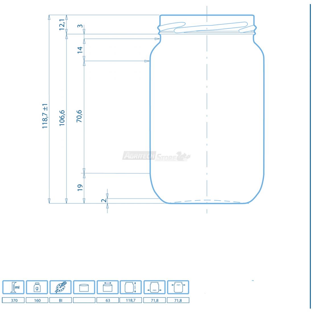 Glass vase in use Food gr. 370 Twin Off closure with Ø 63 mm