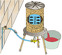 A simple new pressing system working with water pressure. The water press enables to get a very high yield in the extraction of juice from apples, grapes, fruit in general: pressure develops uniformly towards the outer cage throughout its whole lenght. Entirely made of aluminum or stainless steel Aisi 304.